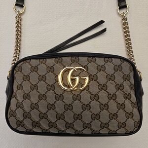 Gucci Marmont Beige and Black Crossbody Bag with Gold Logo