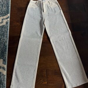 Shine with elegance in these white glitter straight leg jeans. Perfect for adding a touch of sparkle to your outfit.