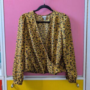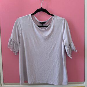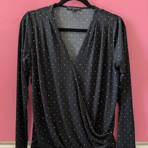 Green paperbag/high-waist dress pant, New York and Company. They have a high waist with a tie front, and side pockets so you can stash your essentials with ease. Tapered leg.