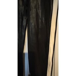 Elevate your look with these sleek SPANX faux leather leggings, designed to hug your curves and make a statement. The striking white stripe down the side adds a sporty yet sophisticated flair, creating a flattering silhouette that elongates your legs. Crafted for comfort and style, these leggings offer a smooth, sculpted feel perfect for transitioning from a casual day out to an evening on the town. Pair them with sneakers for a chic athleisure vibe or dress them up with heels for a night of dancing.