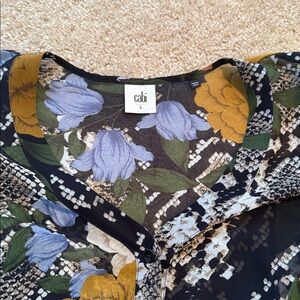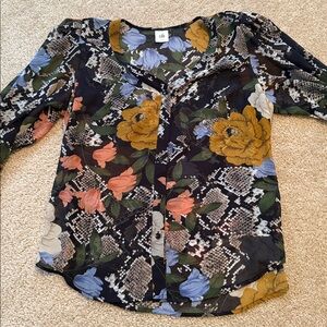 CAbi snake charmer floral see through blouse button down black blue v neck L