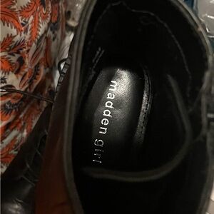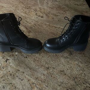 Madden Girl Black Lace-Up Boots. Size 10. Black. New without tags. Only tried on but not worn. These lace up boots have zippers on the sides for easy on and off as well. These boots are super cute and will make any outfit elevated. They are also very comfortable. Retail $80.