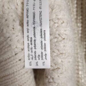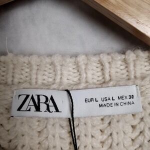 Labels/Identifiers: Zara woven neck label; interior size and care tags noting EUR L / USA L / MEX 30, made in China; fiber content tag listing 65% acrylic, 24% polyamide, 11% polyester.