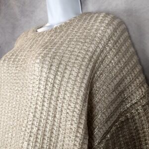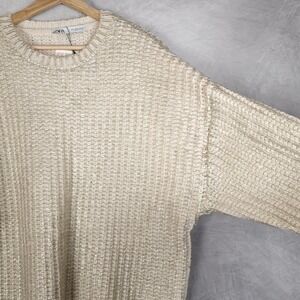 Zara Sweater Womens Large Gold Metallic Knit Oversized Pullover Crewneck Chunky