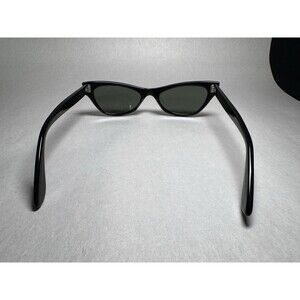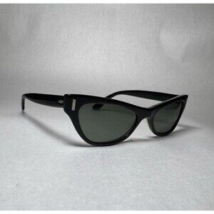 The Vintage RAY-BAN B&L Black Cat Eye Sunglasses USA are classic and iconic eyewear from the renowned brand Ray-Ban. Made in the United States, these original sunglasses feature a timeless black cat eye frame with gray lenses, embodying the rockabilly look popular among women. Perfect for adding a touch of vintage flair to any outfit, these sunglasses are a special and stylish accessory that exudes sophistication and retro charm.