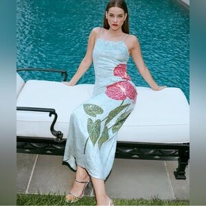 NWT FARM Rio Anthurium Flowers Slip Maxi Dress