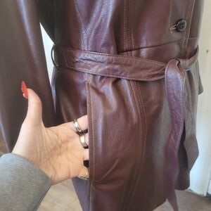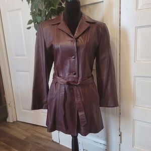 Vtg Leather Dark Burgundy Mid Length Jacket