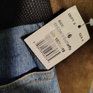 Very cute with back pocket embroidery and matching belts. New with tags attached. Great for spring wardrobe.