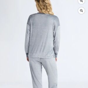 Experience ultimate comfort with this stylish gray velour pajama set with coordinating socks. Perfect for a restful night's sleep.