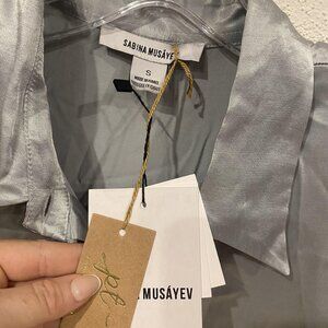 Sabina Musayev Opaline Top Womens Small Smoked Aqua Satin Ruffle Blouse Shirt