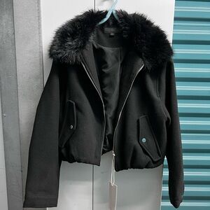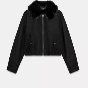 Zara Black Faux Fur Lapel Bomber Jacket
