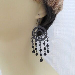 Dangly earrings, boho earrings, gypsy style, black earrings, casual jewelry