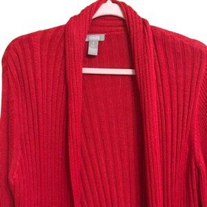 Chico's Women's Red Open Front Ribbed Knit Waterfall Cardigan Size 1