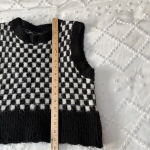 Miou Muse women’s sweater vest in a black and white checkered knit. Soft, fuzzy texture with slight stretch for comfort. Sleeveless pullover style makes it perfect for layering over button-downs, long sleeves, or tees. Trendy preppy / Y2K aesthetic — great for fall and winter outfits. No flaws- very minor wear.
