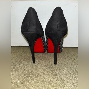 Christian Louboutin Black Mesh Peep Toe Heels with the signature Red Soles