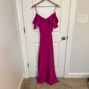 Lulus Sunny Perfection Magenta Ruffled Off-the-Shoulder Wrap Dress Women Size Sm