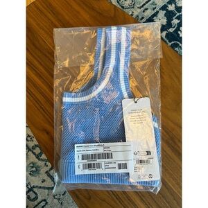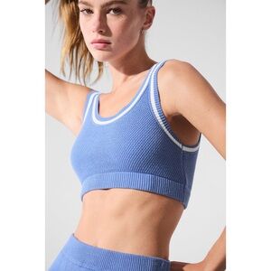 Cut from a softly textured cotton knit with a slew of preppy details, this bra top brings a touch of tenniscore to any look. It has a lightly supportive fit with tank straps, a classic scoop neck, and a scooped-low back. And as for that cute, contrasting trim? It pairs perfectly with the rest of the Tennis Club collection.