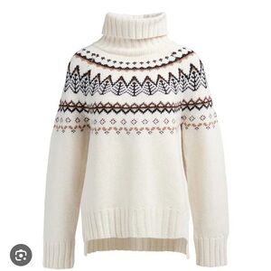 Elegant turtleneck with intricate patterns. Soft cream base with brown accents. Ideal for cozy, stylish wear. Never worn, NWOT. Wool blend, oversize, cozy fit.