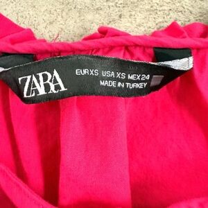 This vibrant pink sundress from Zara features elegant bishop sleeves and a classic crew neck, perfect for casual or resort wear. The mini length and flowy silhouette add a touch of femininity, making it an ideal choice for a relaxed yet stylish look.