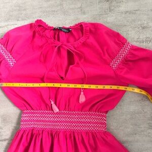 Zara Fuchsia Smocked Poplin Dress Contrast Embroidered Trim Pink Barbie Size XS