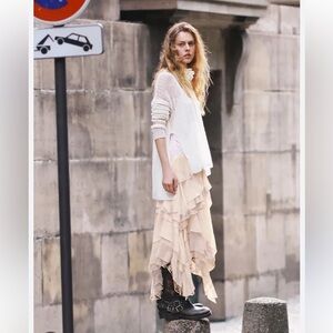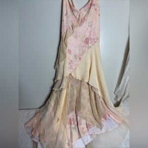 Free People Laughlin Vintage Lace Ruffles Mixed Printed Asymmetrical Dress