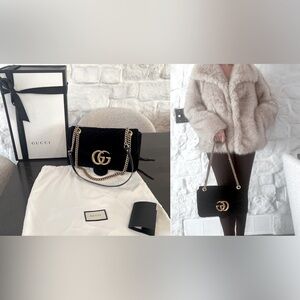 Authentic Gucci Marmont GG Large Black Velvet Shoulder Bag