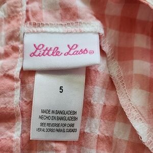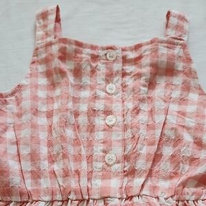 Charming pink checkered dress with ruffle hem. Button front detail. Perfect for casual outings. New without tags