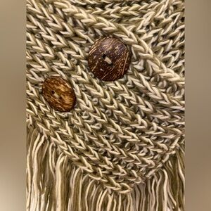 Knitted Loop Fringe Infinity Scarf Sweater Collar Crochet V-neck Wooden Buttons