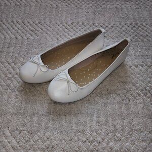 Cat & Jack White Ballet Flats with Bow - Girls Size 4 - Dress Shoes
