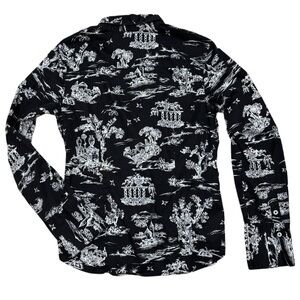 Charter Club Black White Toile Print Button Down Shirt Size M