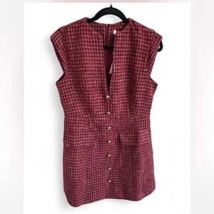 Commense Metal Button Tweed Sleeveless Mini Dress