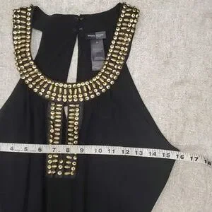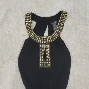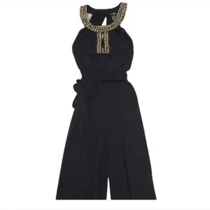 Bisou Bisou woman's wide leg black belted jumper rompers with gold detailing around collar size 8,preowned great preloved condition from pet and smoke free home.