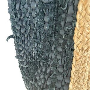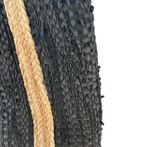Wonderful bag perfect for the sea. In natural jute woven with recycled leather from tannery waste. See imperfections in leather weave, making this bag a one of a kind. Shoulder bag, comfortable and roomy.