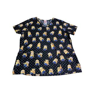 Women's Scrubs Medical Despicable Me Minion All Over Print Black Yellow Size Lg