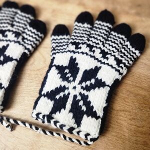 These are traditional knit gloves handmade by artisans in Pakistan.