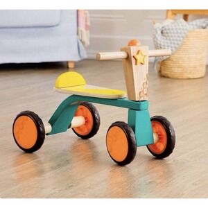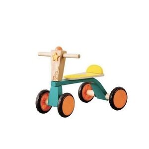 Wooden 4-Wheel Ride-On Tricycle Yellow Teal for Toddlers Boys & Girls Ages 1-3