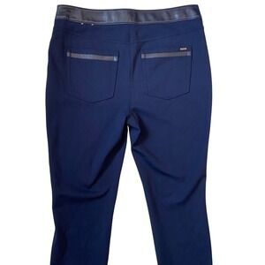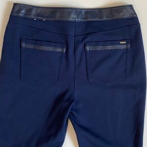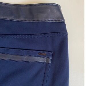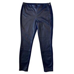 White House Black Market Navy Faux Leather Panel Leggings Pants Size 10 GUC