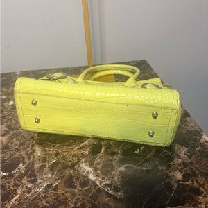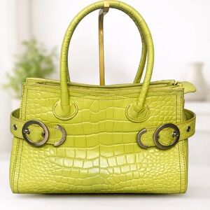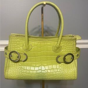 💚 Franco Sarto Lime Green Croc Embossed Leather Satchel Handbag