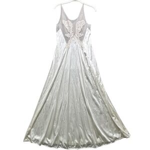 Vanity Fair Ivory Lace Slip Dress Small Coquette Bridal Nylon 90s Maxi Gown