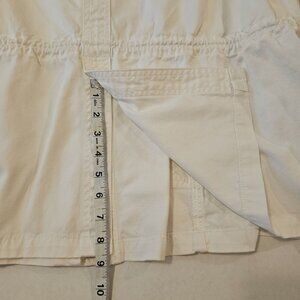 Susan Betro Denim, Plus Size 4XL, White Jacket, Full Zip, Long Sleeves with Elastic Cuff, 2 Large Square Pockets with Snap Closure, Drawstring waist, Hidden Zipper with Silver Zipper. Slit at hem on Back of Jacket. See Pictures for measurements.