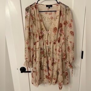 Chic cream bomber jacket with floral embroidery. Features pink and blue accents. Stylish and unique design. Only worn once. Amazing condition
