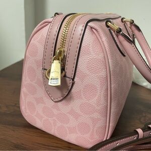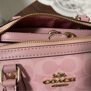 Elegant and stylish, this Coach handbag in pink is perfect for any occasion. Its chic design and quality craftsmanship make it a must-have accessory.