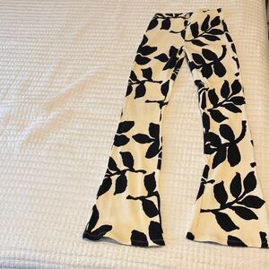 Chic flare jeans with bold black floral design. Perfect for a stylish look. NEW WITHOUT TAGS