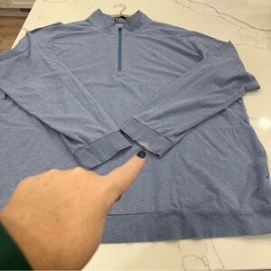 Note likely bleach stain on sleeve. Near the seam so not extremely visible when wearing. Otherwise great condition. No other stains or holes and no fabric pilling.