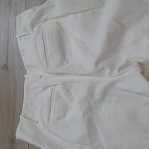 Stylish white wide-leg pants with button details. missing belt high rize wide leg waist 17 rise 11.5 inseam 27.5 lenght 38.5