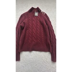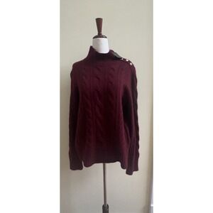 NEW CHARTER CLUB 2 PLY 100% CASHMERE MOCK NECK CABLE KNIT SWEATER XL BURGUNDY