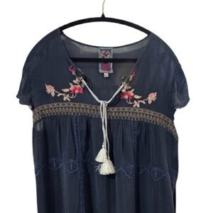 Johnny Was Blue Edda Dress with Colorful Embroidery