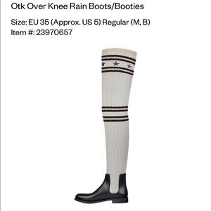 Over the knee sock boot by Givenchy NWT 100% authentic with star decal. Unfortunately did not fit me. Feet grew with pregnancy. I would say they run true to size 5