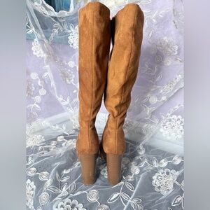 These Elegant Wide Calf tan suede platform heeled boots make a statement! Enhancing your Retro style! Perfect for any occasion, they combine comfort, with the wide calf, zipper closure and 1” platform toes. All done with sophistication. They do need to be waterproofed.