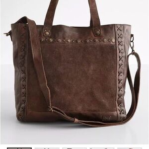 Stylish brown leather tote bag with intricate detailing. Perfect for everyday use.